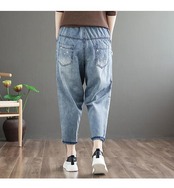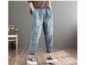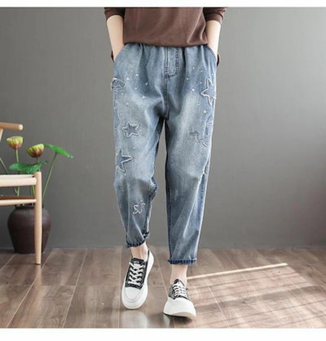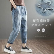 デニムパンツ レディース 大きいサイズ 春 夏 テーパードパンツ デニム ボトムス 星柄 チノパン ジーパン ロールアップ 森ガール 大人可愛い 春 無地 ズボン ウエストゴム 大きいサイズ 柔らかい | DOKO-ME