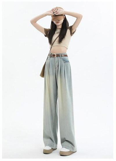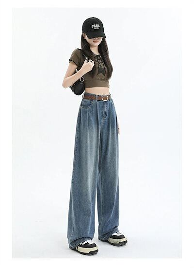 デニムワイドパンツ 春夏 レディース デニムパンツ パンツ ジーパン ボトムス ワイドルーズ ロングパンツ デニムパンツ 長ズボン ジーンズ 大人カジュアル ハイウエスト 大きいサイズ ゆったり 体型 | DOKO-ME