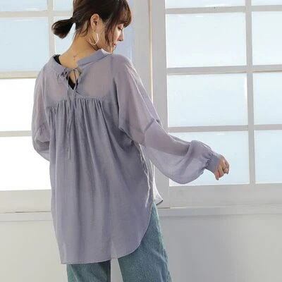 UVカット特集レディース ブラウス長袖ブラウス日焼け防止体型カバーチュニッククルーネックトップス日系 長袖 日焼け防止 通気性のいい ゆったり開き襟 シャツ サマーニット夏でも着れる!サマーニットシン | DOKO-ME