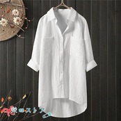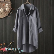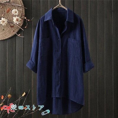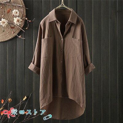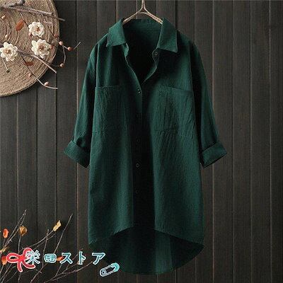 ロングシャツ ブラウス シャツ トップス シャツブラウス レディース チュニック ロング 折り襟 綿麻 長袖 無地 ポケット 体型カバー ゆったり シンプル 30代