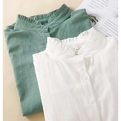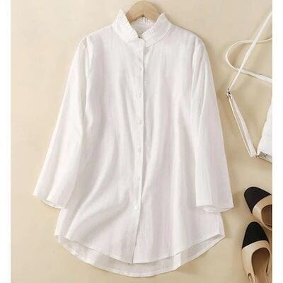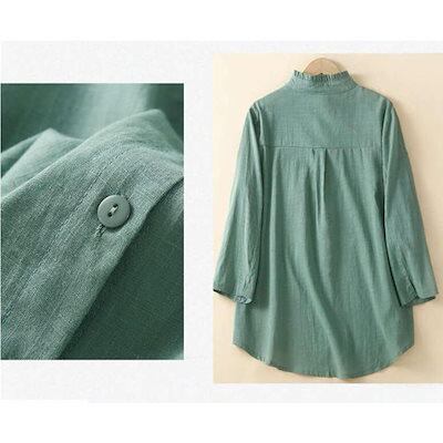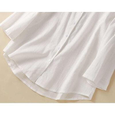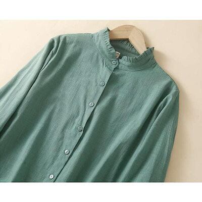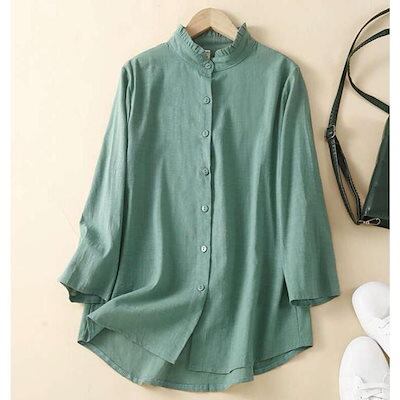 シャツ レディース 長袖 立ち襟 綿麻風 ブラウス 前開き ブラウス 春 きれいめ 大人 カジュアル シンプル 体型カバー 秋 大きいサイズ ゆったり