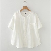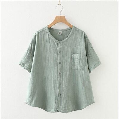 シャツ レディース 夏 半袖 ガーゼシャツ ブラウス レディース ホワイト シャツブラウス コットン 綿 通気性 シンプル 折り襟 大きいサイズ 着心地 体型カバー