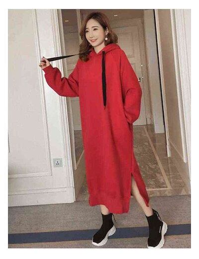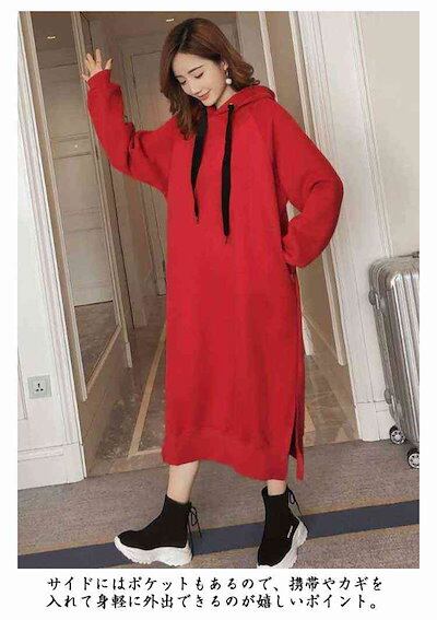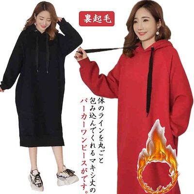 早い者勝ち パーカー レディース ワンピース 裏起毛 厚手 アウター パーカーワンピース プルオーバーパーカー ロング丈 プルオーバー フード付き スウェット レイヤード風 無地 カジュアル ゆ | DOKO-ME