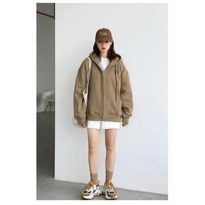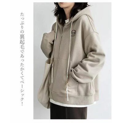 出荷が早い裏起毛 パーカー レディース トップス レディース 暖かい あったか アウター 長袖 刺繍 無地 ビッグサイズ ジップアップパーカー オーバーサイズ ふわふわウ