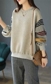 パーカー ニット セーター レディース シャツ ブラウス プルオーバー トップス 長袖 ラウンドネック 切り替え 裏ボア 裏起毛 着痩せ 秋 冬 体型カバー カジュアル ゆったり アウター 上着 通勤 | DOKO-ME