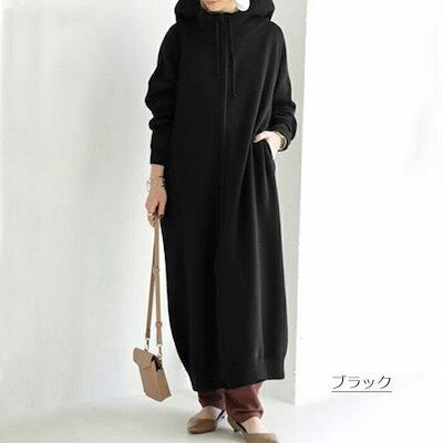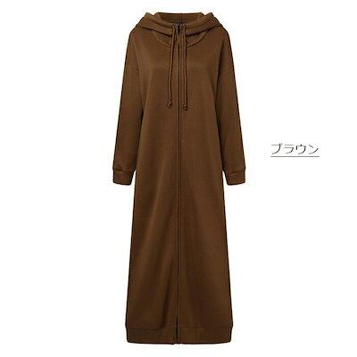 パーカーワンピース ロング 長袖 フード付き レディース カジュアル ロングパーカー アウター ロングコート ハイネック コート スウェット ジップ 長い フード 大きいサイズ 体型カバー きれいめ | DOKO-ME