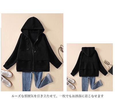 裏起毛 パーカー ジップアップ レディース スウェットジャケット フード付 スウェットパーカー ドロップショルダー 裏起毛パーカー オーバーサイズ あたたかい 前開き フード付きジャケット 裏起毛ジャ | DOKO-ME