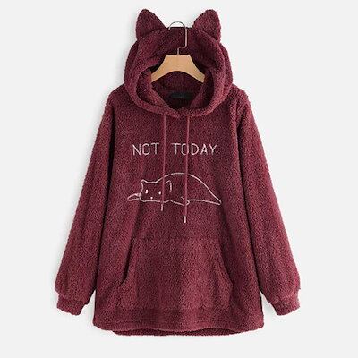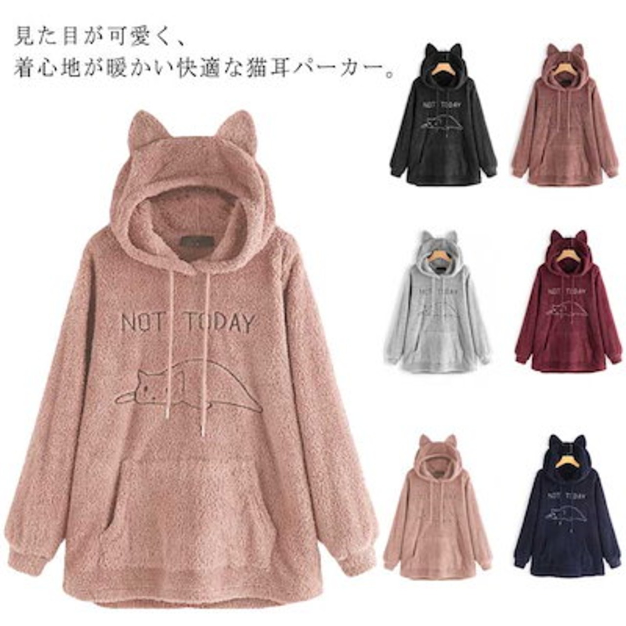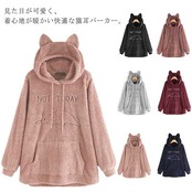 ボアパーカー 服 ゆるパーカー M-5XL レディース 猫耳 プルオーバー フード付き 大きいサイズ 猫刺繍 もこもこ 可愛い 秋 冬 服 中学生 weiyi-2649-gg