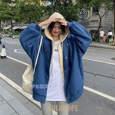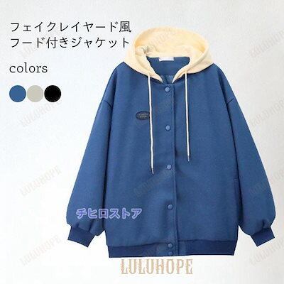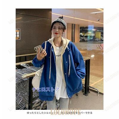 ジャケット パーカー レディース フェイクレイヤード フード付き 長袖 アウター 綿混紡 カジュアル ゆったり 体型カバー オシャレ トップス