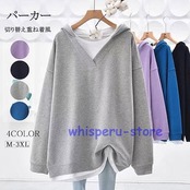 パーカー レディース オーバーサイズ 春秋コーデ 薄手 スウェット トレーナー フェイクインナー ゆったり 着痩せ 秋服 暖かい アウター 秋冬 オシャレ 大人気