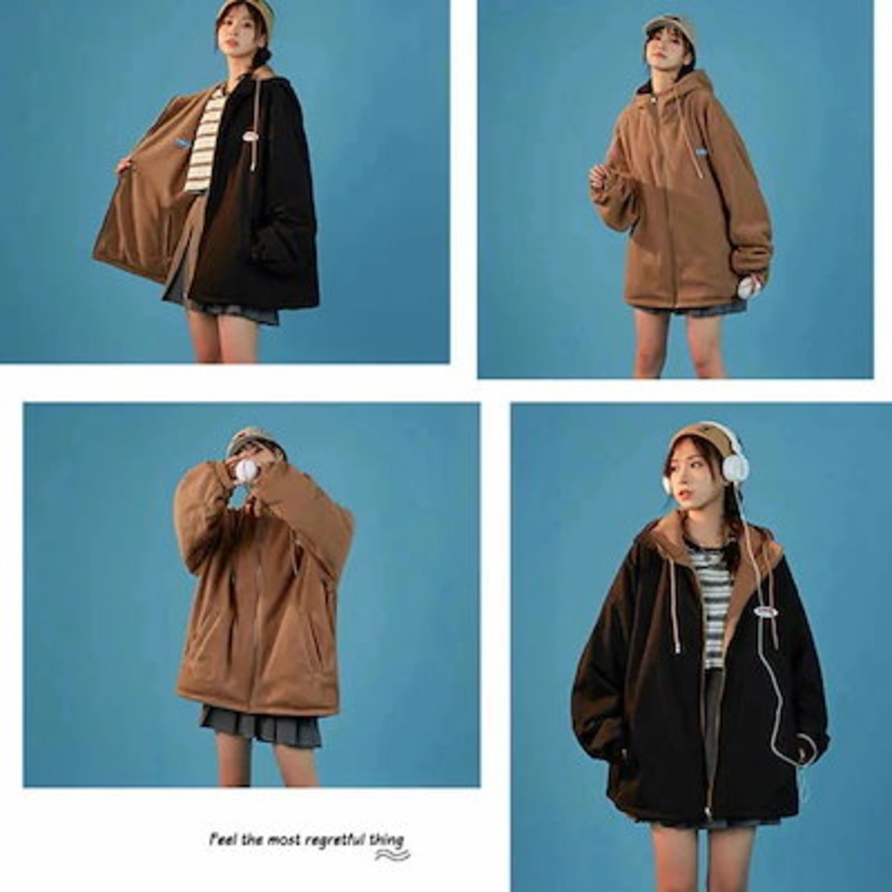 両面着れるジャケットボアコート裏起毛コートレディースフリースジャケットボアジップアップパーカーコートブルゾンパーカーマウンテンパーカージャケット両面着れるアウタートップス登山通勤長袖アウター秋春軽量3 | DOKO-ME