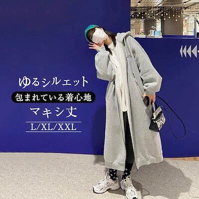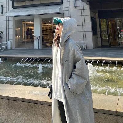 ジップアップパーカーパーカー裏起毛パーカーコートレディース コート長袖シンプル無地春秋春秋冬春秋冬大人女性フード付きロングパーカー体型カバーカジュアルゆったりパーカーワンピース20304050ロング丈 | DOKO-ME