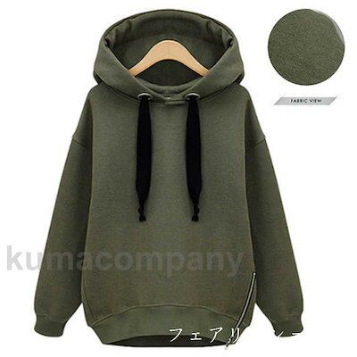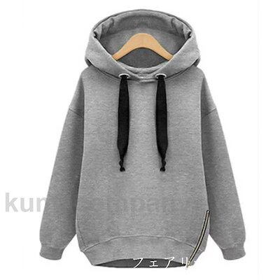 裏起毛 おしゃれ レディース スウェット 大きめ サイドジップ プルオーバー ロング丈 トレーナー トップス 長袖 フード付き 大きいサイズ ロングパーカ