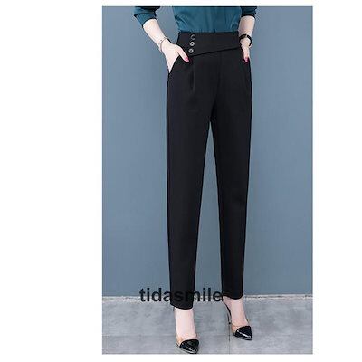 テーパードパンツ レディース ボトムス スラックス 九分丈 ビジネス ハイウエスト カジュアル フォマール オフィス ブラック 着痩せ