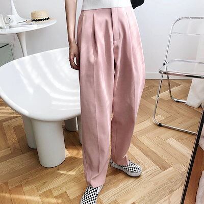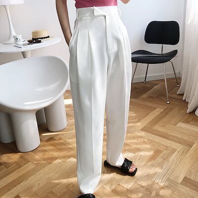 レディースモップパンツ黑白薄手ロング丈ズボン皺防止肌にやさしい美腿合わせやすい人気スラックススーツ接触冷感ボトムス福袋