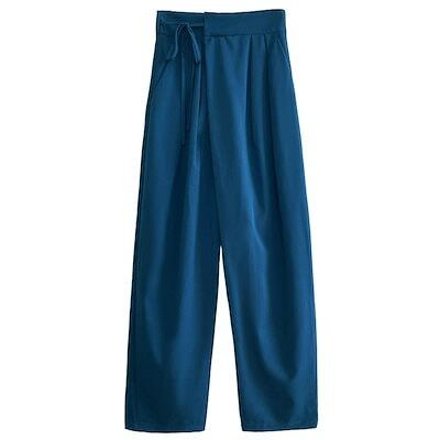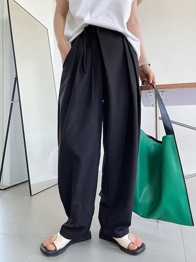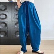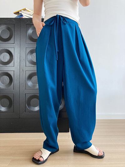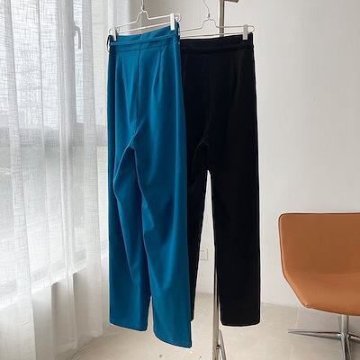 韓国ファッションレディースロング丈ズボンモップパンツ青い薄手ロング丈ズボン人気スラックスパンツスーツ福袋