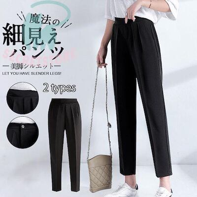 新品(タイムセール)テーパードパンツ パンツ レディース ボ 秋春 着痩せ 美脚 九分丈 体型カバー 楽ちん オフィス 就活 カジュアル 通勤 ズボン 無地