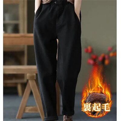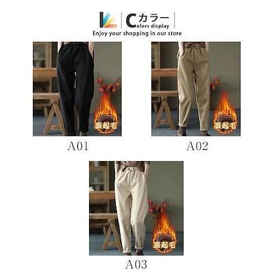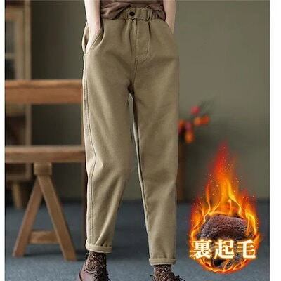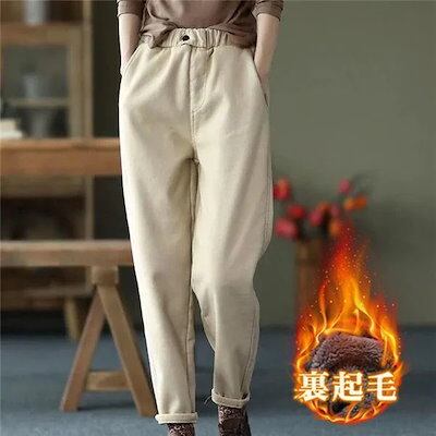 第1弾セール中チノパン レディース テーパードパンツ 裏ボア 裏起毛 ウエストゴム カジュアル 厚手 ロング丈 細身 暖かい 旅行 通勤 通学 着痩せ