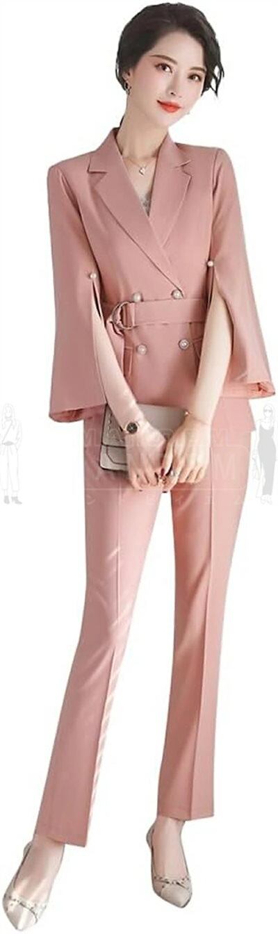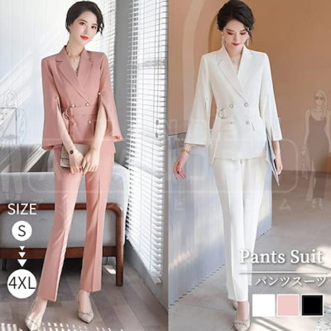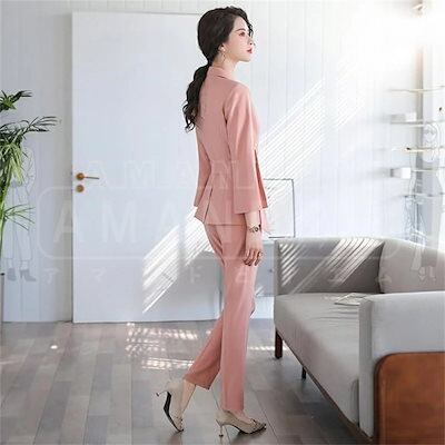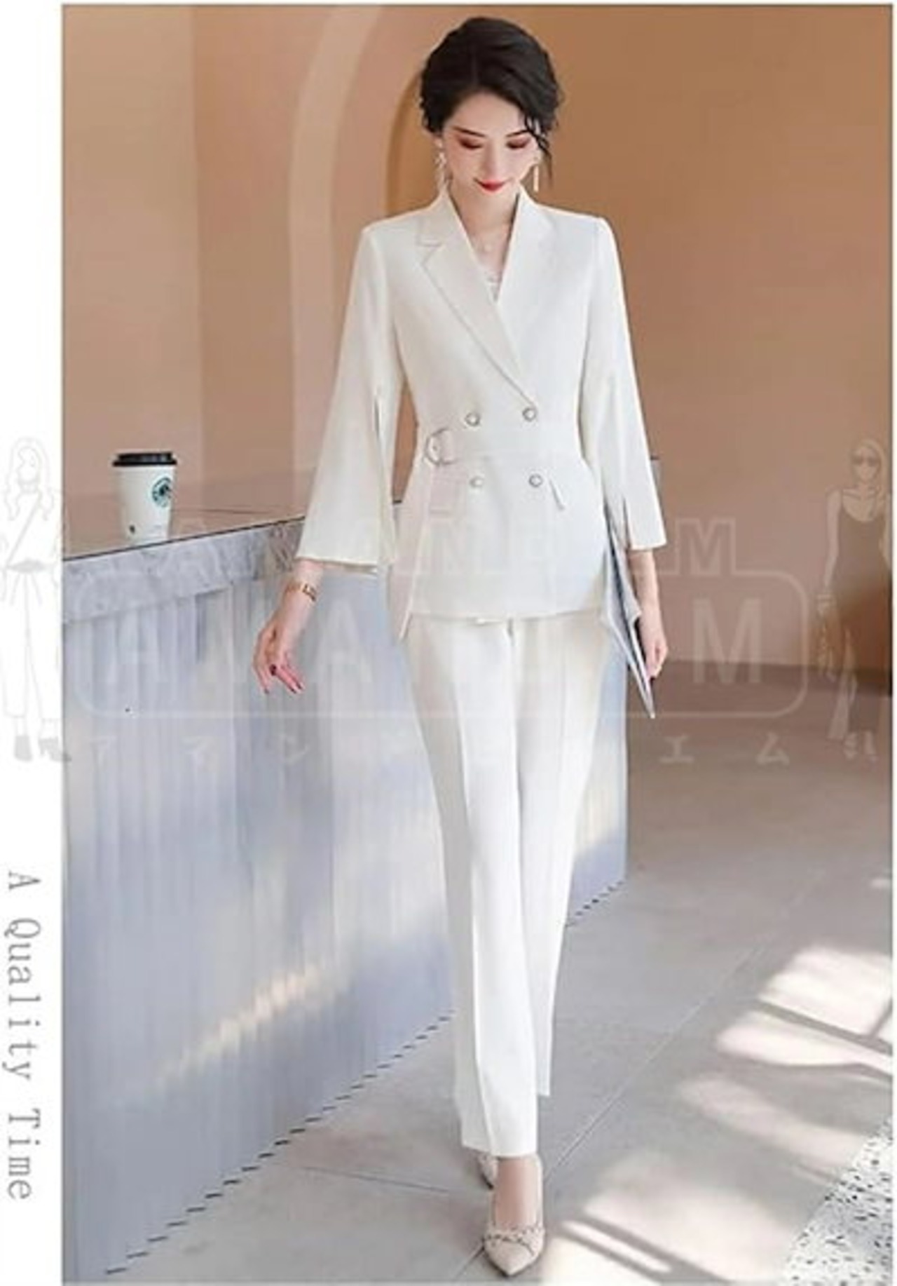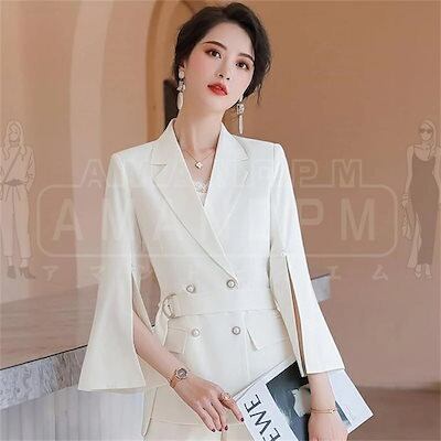 セットアップ レディース カジュアル きれいめ 夏 スーツセット ベルト付き 2点セット 長袖 大きいサイズ 事務服 スーツ パンツスーツ ジャケット パンツ ビジネススーツ フォーマル カジュアル | DOKO-ME