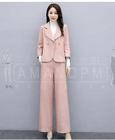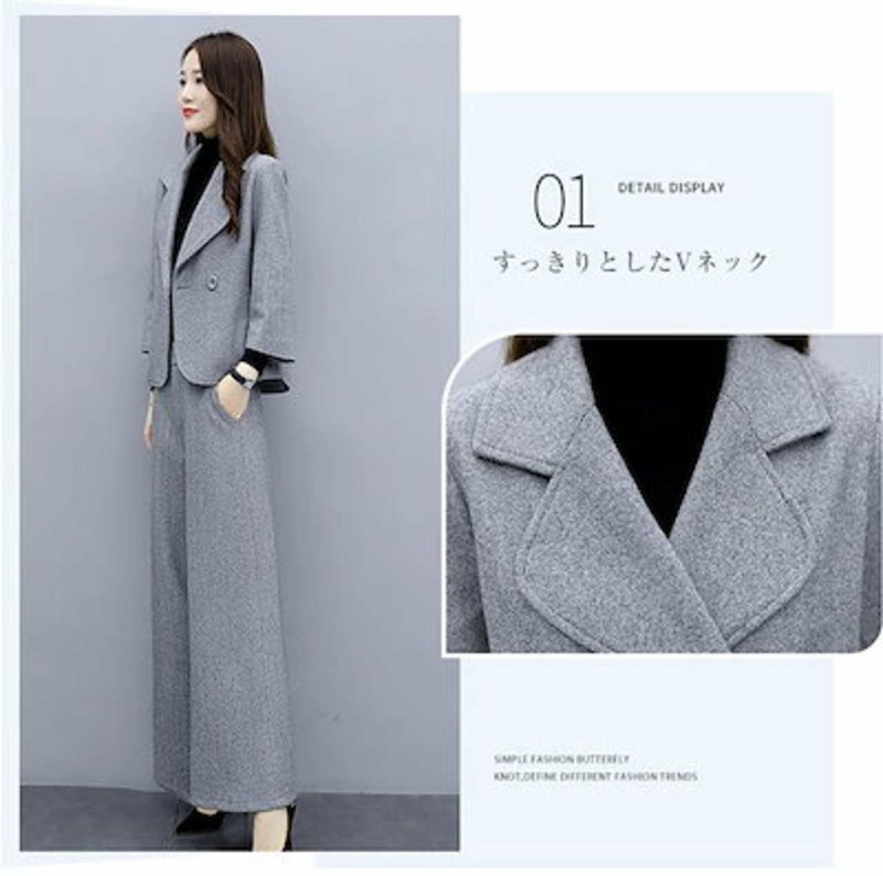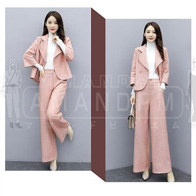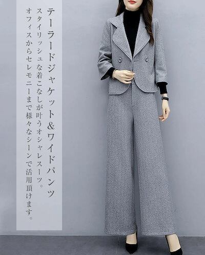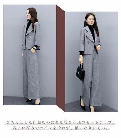 セットアップ レディース スーツ パンツスーツ セレモニー カジュアル ママセット ビジネススーツ 大きいサイズ フォーマル テーラードジャケット ワイドパンツ 2点セット 入学式 卒業式 入園式 卒 | DOKO-ME