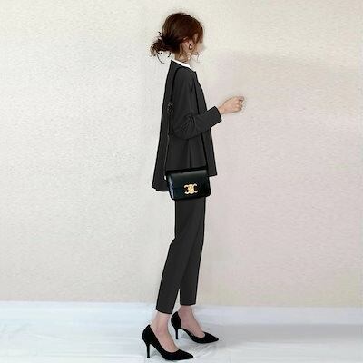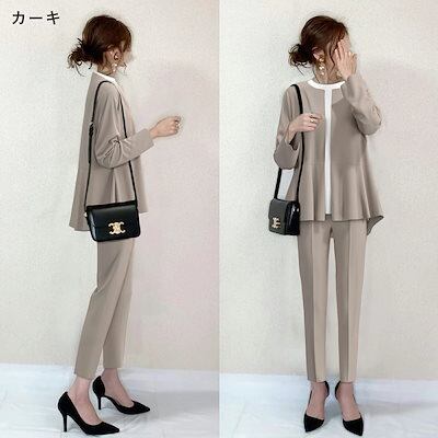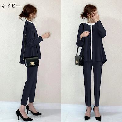 セットアップ レディース スーツ 春 ハイヒール 2点セット 卒業式 秋冬 秋 冬 母 30代 40代 着回し ノーカラー フォーマル テーパードパンツ 入学式 母親 パンツスーツ きれいめ ママ 大 | DOKO-ME