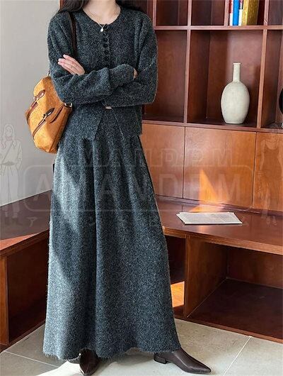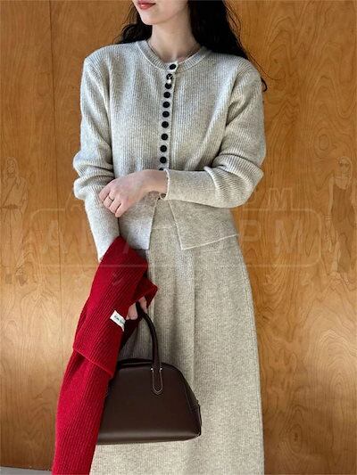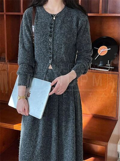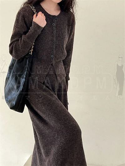 セットアップ レディース フォーマル スーツ スカートセット 上下2点セット ニット カーディガン スカート ロングスカート 2点セット 長袖 シンプル おしゃれ 気質 カジュアル 体型カバー 卒業式 | DOKO-ME