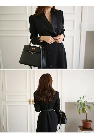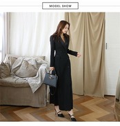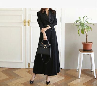 ワンピーススーツ 長袖 フォーマル ロングワンピース レディース レディースロングワンピ Vネック ベルト付き ミモレ丈 オフィス カジュアル 入学式 着痩せ 女性らしい オフィス OL 通勤 上品 | DOKO-ME