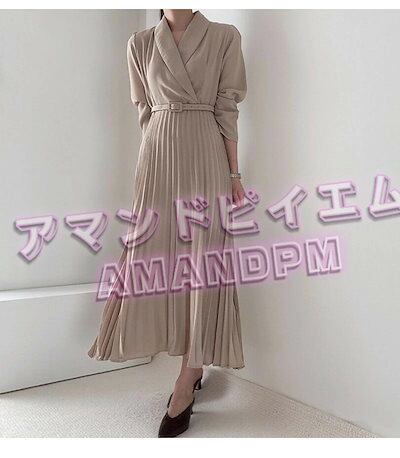 ワンピース プリーツ スーツ ドレス プリーツワンピース ワンピーススーツ レディース 春 秋 長袖 ロングワンピース マキシワンピース 裏地付き カシュクール きれいめ 上品 フォーマル 通 | DOKO-ME