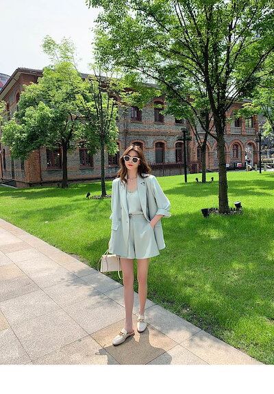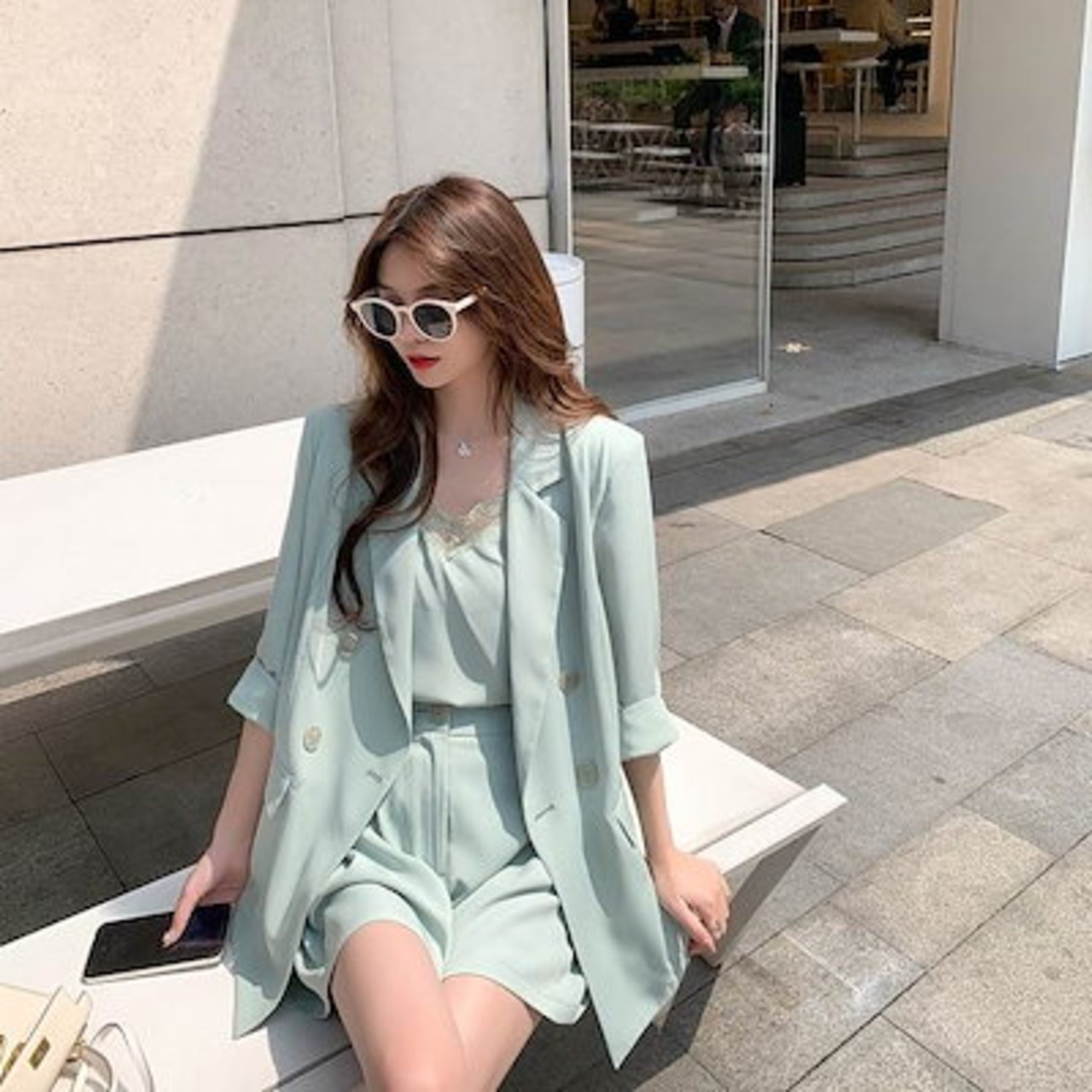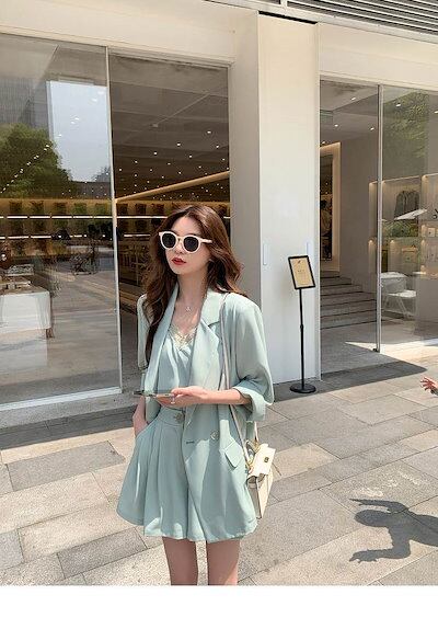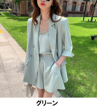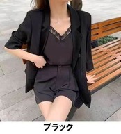 3色 セットアップ スーツ 3点セット キャミ フォーマル タック キュロットパンツ レース 透け感 テーラードジャケット シアー 切り替え ショートパンツ かっこいい レディース 上下セット カジュ | DOKO-ME