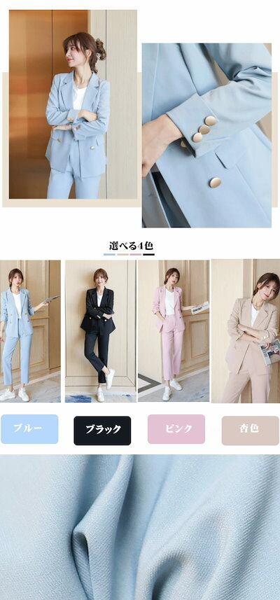 スーツ レディース セットアップ フォーマル パンツスーツ 大きいサイズ 入学式 卒業式 ジャケット パンツ ロング 黒 ブラック 長袖 無地 シンプル ビジネス オフィス 通勤 ママスーツ 入園式 | DOKO-ME