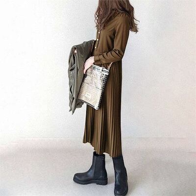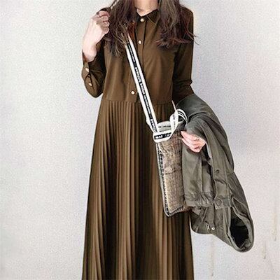 シャツワンピース ワンピース プリーツ スーツ ドレス プリーツワンピース ワンピーススーツ レディース 春秋 長袖 ロングワンピース シャツワンピース カシュクール きれいめ 上品 フォーマル 通勤 | DOKO-ME