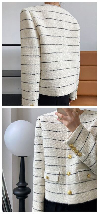 レディース スーツジャケット ストライプ柄 レディース コート 秋 ジャケット フォーマル ツイード スーツ カーディガン 春 秋 冬 オフィス 通勤 OL 入園式 入学式 30代 40代 50代 | DOKO-ME