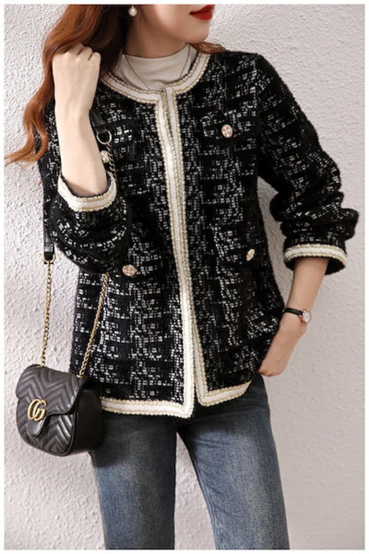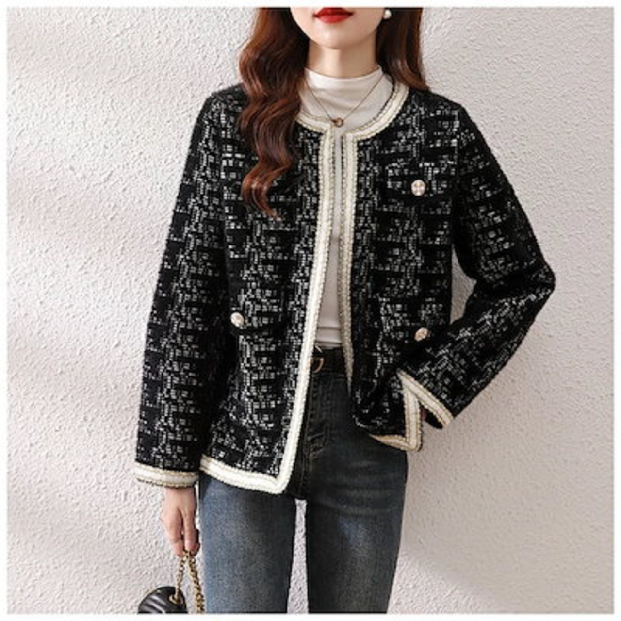 ツイードジャケット ジャケット レディース 秋冬 フォーマル きれいめ ショート丈 ツイード スーツ テーラード スーツ 入学式 長袖 ノーカラーコート 30代 50代 通勤 アウター 通勤 着痩せ | DOKO-ME