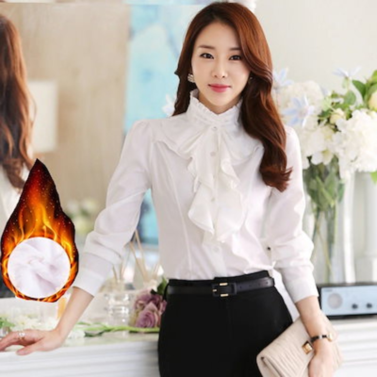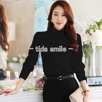 襟 フリル ブラウス シャツ レディース ワイシャツ フォーマル ビジネス スーツ 白 ホワイト 長袖 フィス カジュアル 秋 冬 秋冬