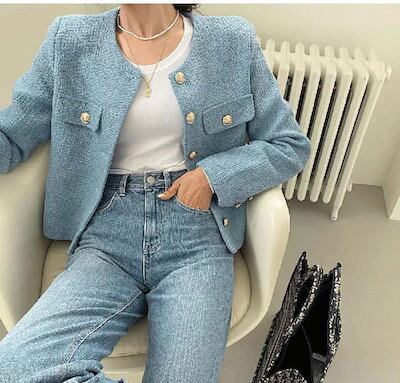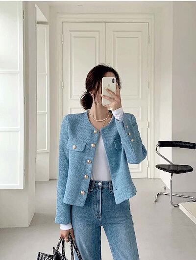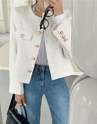 ジャケット レディース 春 秋 ツイード ノーカラー スーツ 単品 ジャケット ショート丈 フォーマル ツイード スーツ カーディガン 春 秋 着痩せ 体型カバー シンプル カジュアル おしゃれ 春 | DOKO-ME
