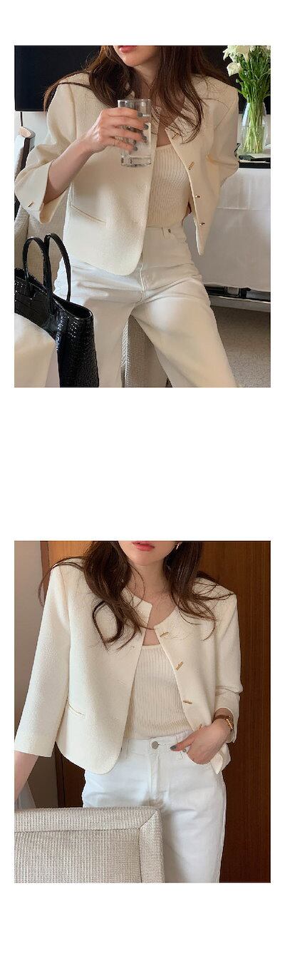 ジャケット レディース 春 秋 ツイード調 ノーカラー スーツジャケット カーディガン ショート丈 フォーマル ツイード スーツ カーディガン 着痩せ 体型カバー シンプル カジュアル おしゃれ フ | DOKO-ME
