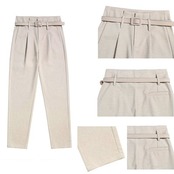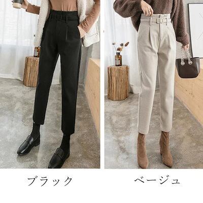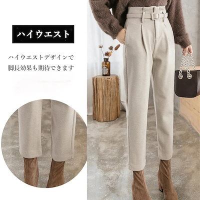 テーパードパンツ レディース スーツパンツ ハイウエスト ベルト付き ストレートレッグパンツ