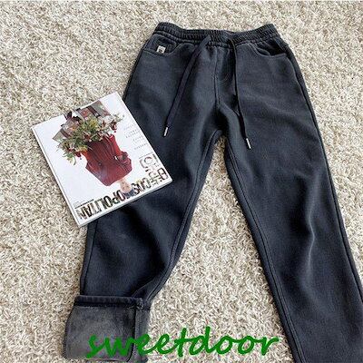 テーパードパンツ 裏起毛 レディース 冬 サルエルパンツ デニム風パンツ ロング丈 ロングパンツ ボ 秋 冬 着痩せ カジュアル 暖かい