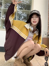 クラッシュカラーのレトロなジャケット野球ウェアコートレディース春2024新作ゆったり着やせミディアム丈トップス