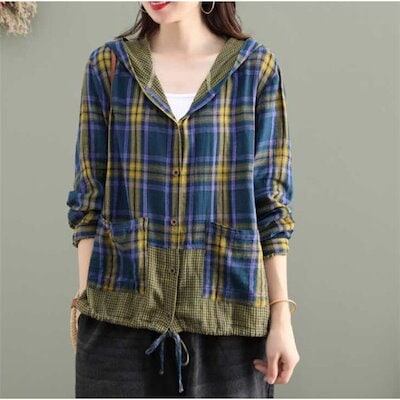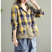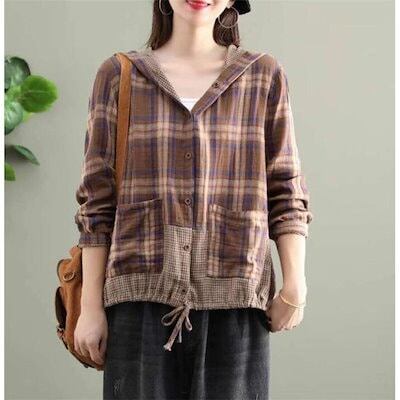 ジャケット レディース 綿 フード付き チェック柄 薄手 春物 シャツ