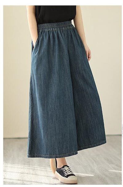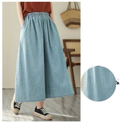 デニムワイドパンツ デニムガウチョパンツ レディース パンツ 夏 ジーンズ 大きいサイズ ゆったり ボトムス ジーパン バギーパンツ イージー 柔らか デニム 森ガール ズボン ウエストゴム 体型カバ | DOKO-ME