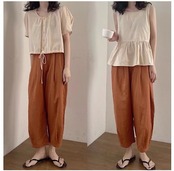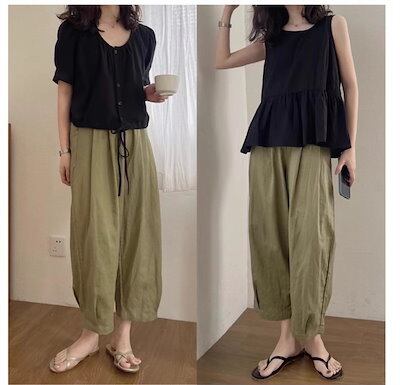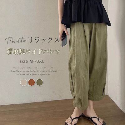 綿麻バルーンパンツ 夏 九分丈 レディース リネン パンツ ワイドパンツ 爽やか ウエストゴム バギーパンツ 大きいサイズ ゆったり リラックス ビーチ 海 爽やか ふんわり 夏 大人可愛い サマー | DOKO-ME