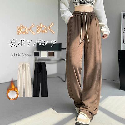 ワイドパンツ 秋冬 裏起毛パンツ レディース 裏ボアパンツ ロングパンツ ウエストゴム 美脚 リラックス 防寒 スウェットパンツ 暖い カジュアル ボトムス 体型カバー バギーパンツ イージーパンツ | DOKO-ME