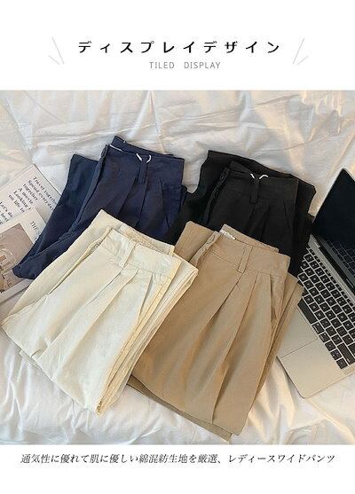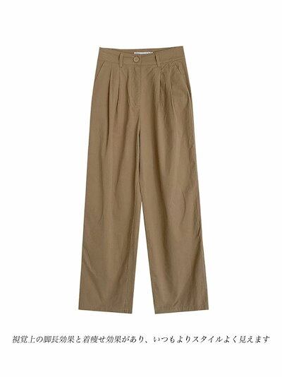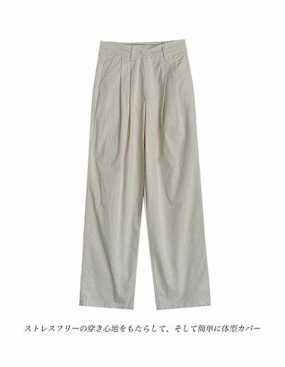 ワイドパンツ レディース ストレートパンツ タック入り チノパン 体型カバー ハイウエスト タックパンツ 春 秋 長ズボン ロングパンツ バギーパンツ チノパンツ 無地 シンプル ボトムス カジュアル | DOKO-ME