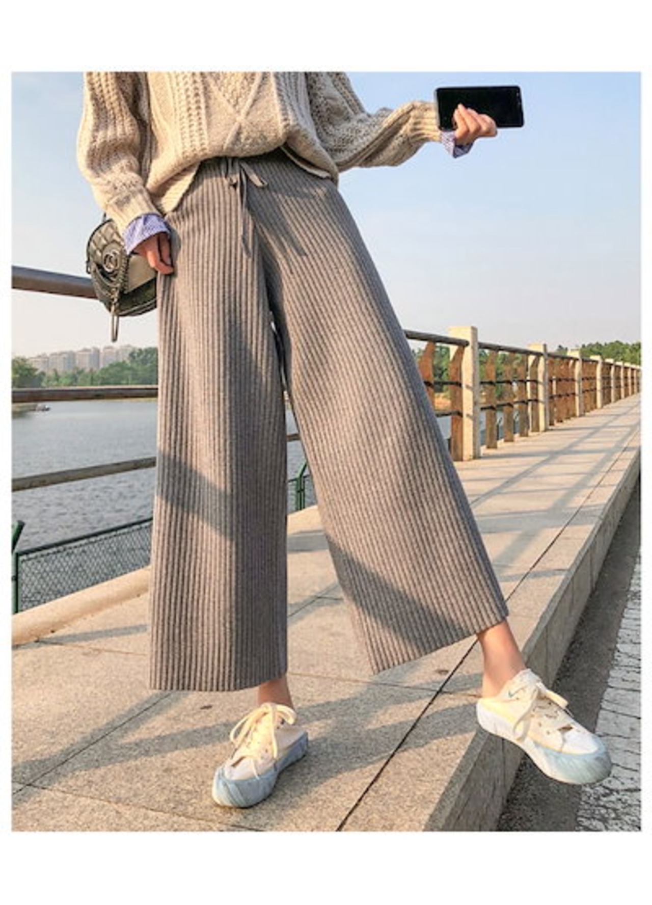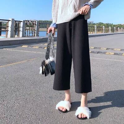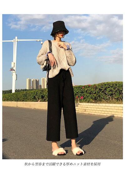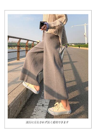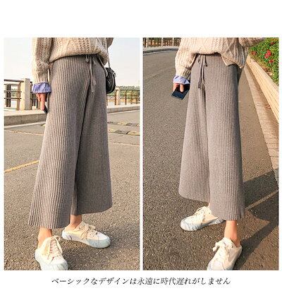 ワイドパンツ レディース ニットパンツ ゆったり 九分丈 美脚 体型カバー 秋冬 春 カジュアルパンツ イージーパンツ バギーパンツ ウエストゴム ニット パンツ 9分丈パンツ ニットワイドパンツ ハ | DOKO-ME