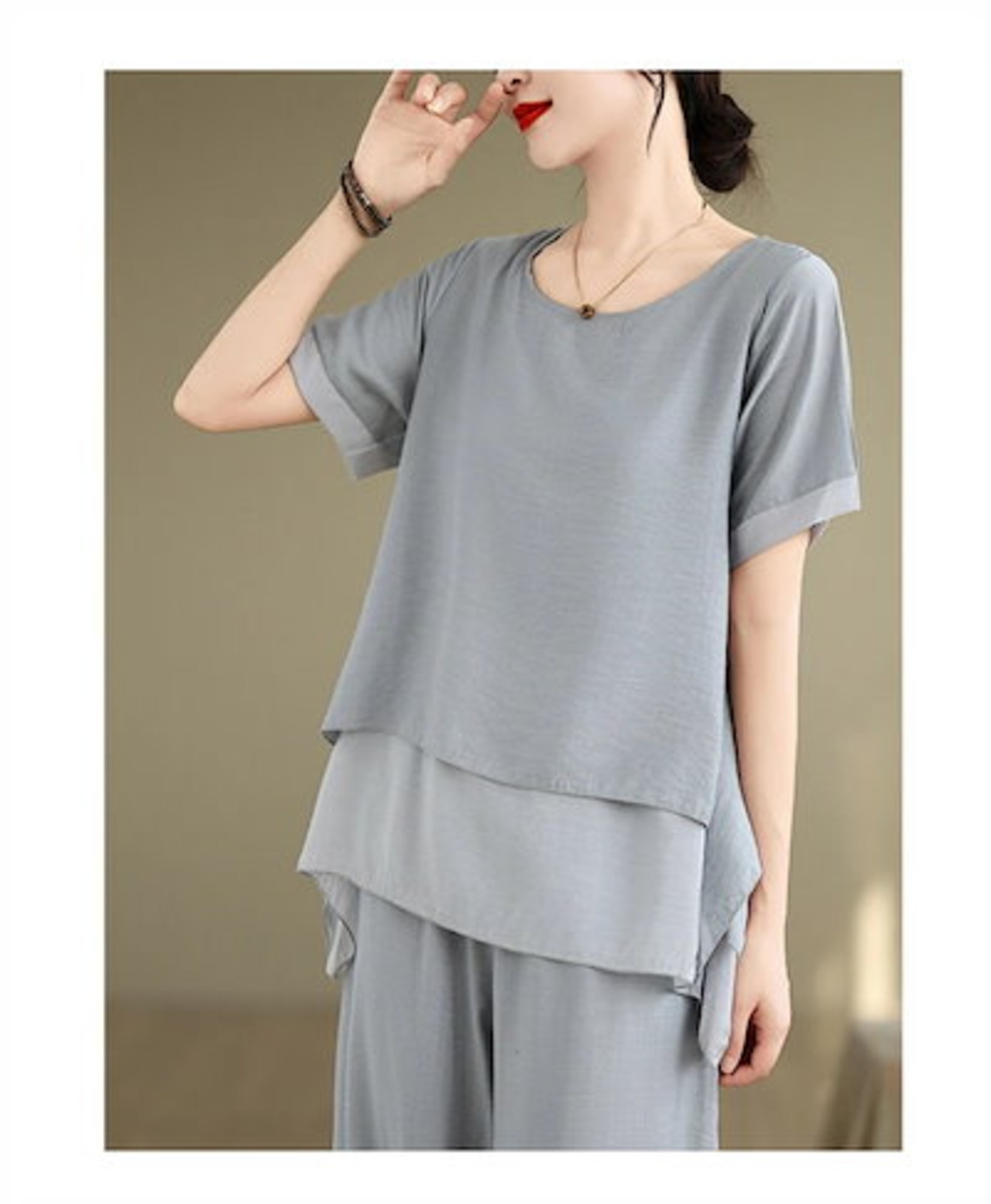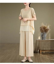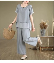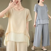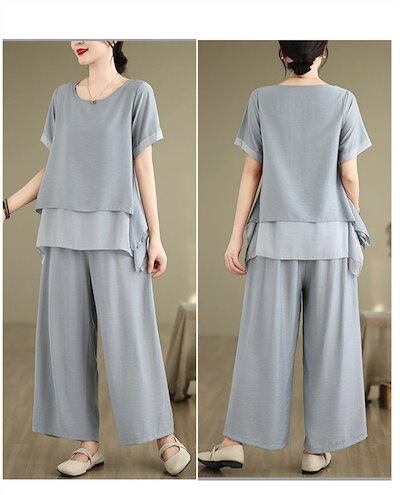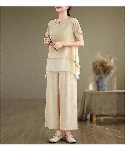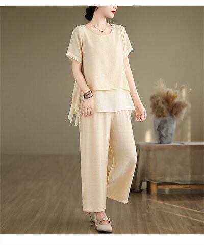 セットアップ 夏 レディース 綿麻風 2点セット フレア 上下セット チュニック Tシャツ&ワイドパンツ 半袖 バギーパンツ イージー フレアパンツ 涼しい カジュアル ナチュラル 大きいサイズ ゆっ | DOKO-ME