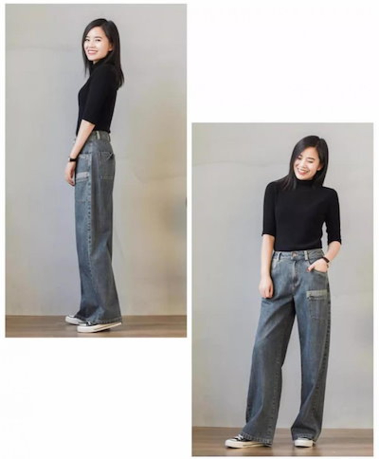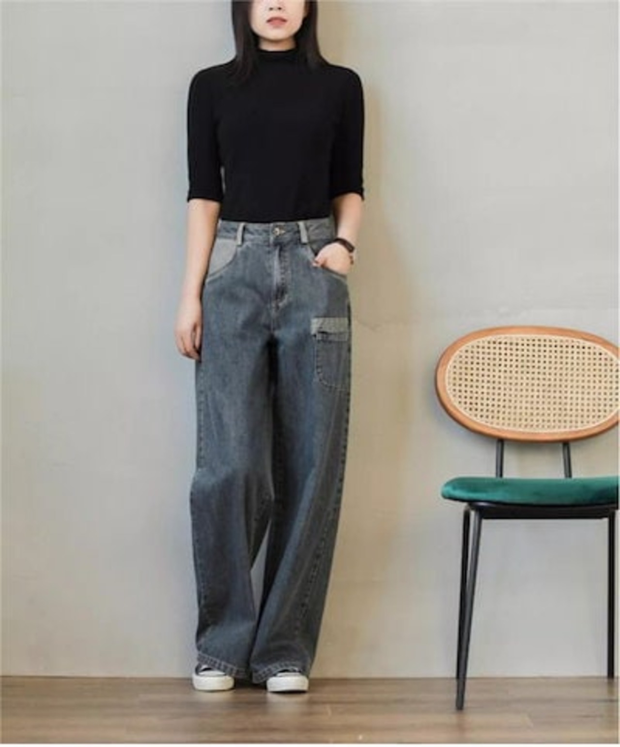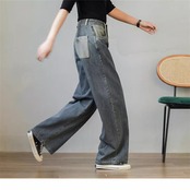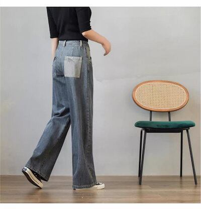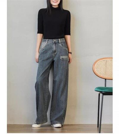 デニムパンツ ストレートワイドパンツ レディース パンツ 配色 ジーンズ ジーパン ロング ゆったり バギー ボトムス ワイドデニムパンツ 春秋 カジュアル ズボン ロング丈 大きいサイズ 美脚 体型 | DOKO-ME