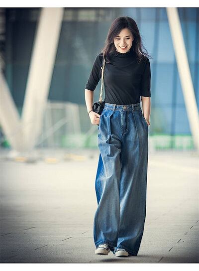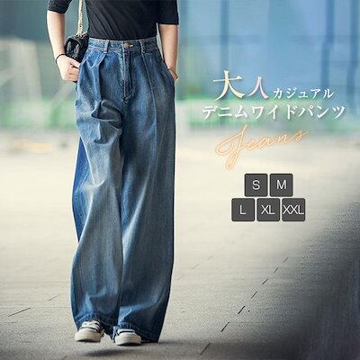 デニムパンツ ワイドパンツ 春 レディース ジーンズ ジーパン ゆったり バギー ボトムス チノパン 大きいサイズ カジュアル ズボン ウエストゴム 大きいサイズ 柔らかいデニム ゆったり 体型カバー | DOKO-ME