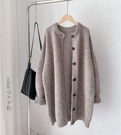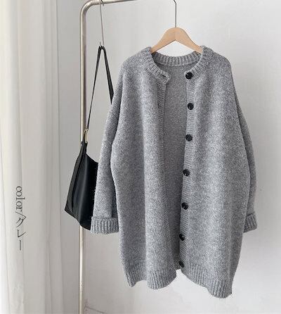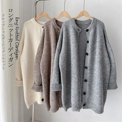 ライトアウター カーディガン フリー シンプル 厚手 ニットカーディガン オフホワイト 無地 防寒 前開き 秋 ボタン グレー 羽織 レディース ミドル丈 ロング丈 トップス 長袖 冬 ロングカーデ | DOKO-ME