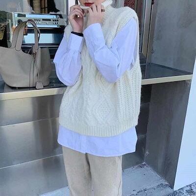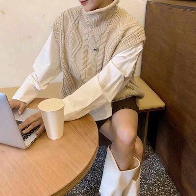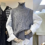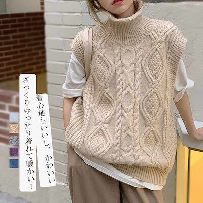 レイヤード 40代 ケーブル カジュアル セーター ニットベスト レイヤードベスト ハイネック 秋冬 ニット 20代 ゆったり 秋 レディース ハイネック ジレ 秋物 タートルネック チョッキ 大きい | DOKO-ME